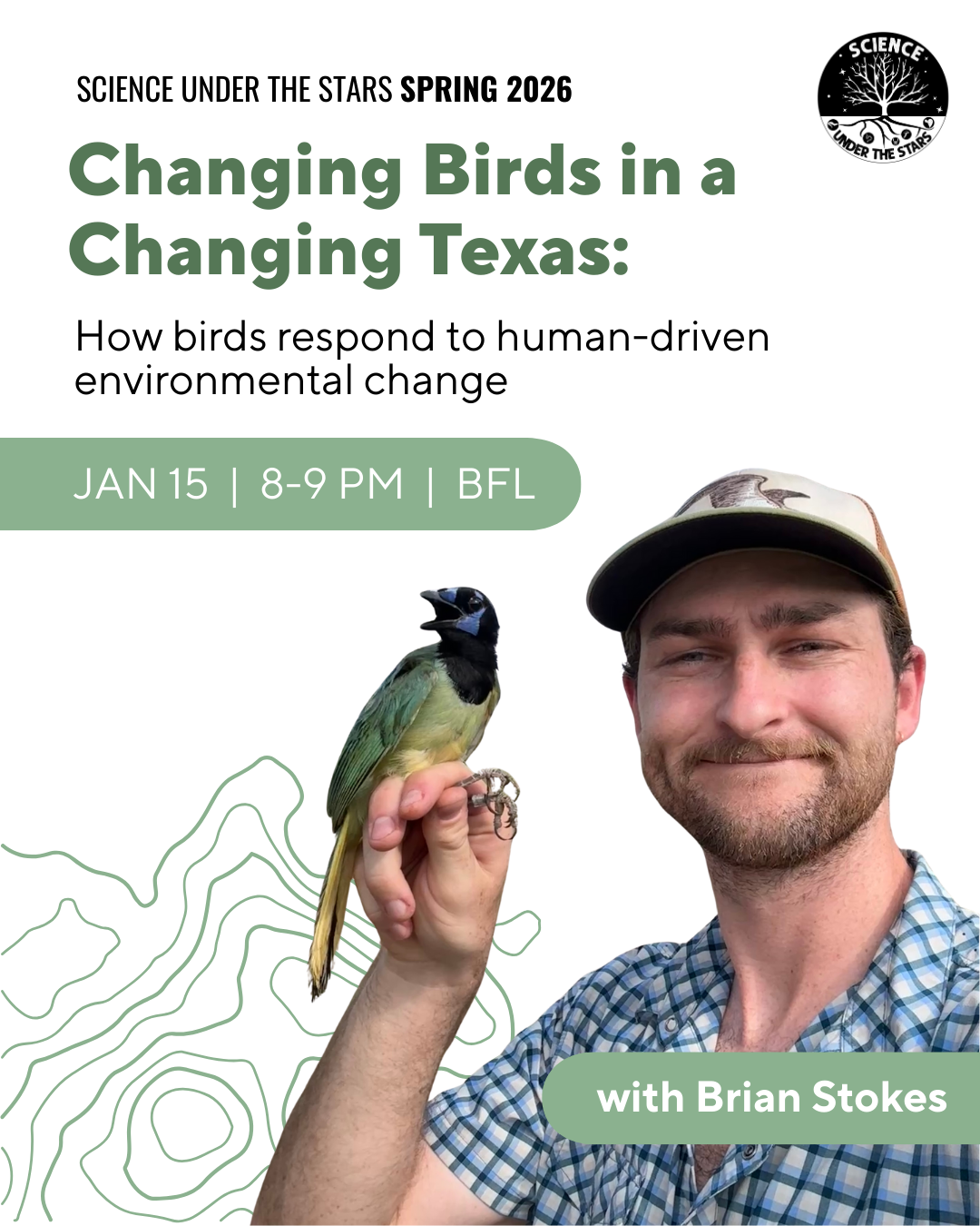 Welcome back for a new semester! We are excited to announce Science Under The Stars’ spring 2026 schedule. SUTS is our free, student-run public outreach lecture series! Mark your calendars for our monthly events covering topics on science and nature by biologists at UT: