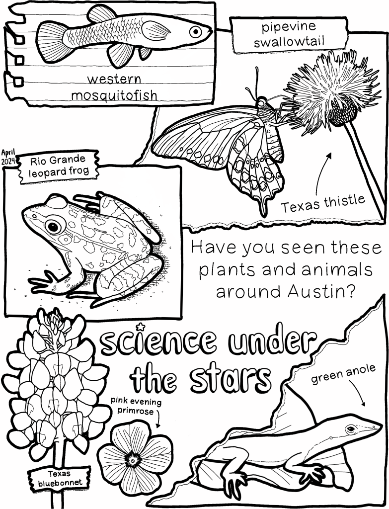 Here are some photos of us having fun with you at Science Under the Stars events! Thanks go to Emlyn Resetarits (EEB PhD Candidate), Ian Wright (EEB alum) and Larry Gilbert (UT Professor and Director of the Brackenridge Field Laboratory) for providing most of these photos!
